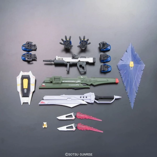 Set Contents: Destiny Gundam, Beam Boomerang x2, Bommerang type Beam Effect, Saber type Beam Effect, “Arondight” Beam Sword, Long-Range Beam Cannon, Manipulators, Fists (1 pair), Poseable (1 pair), Rifle-holding (right), Splayed/Palma Fiocina (1 pair), Beam Rifle, Shield, Beam Shield, 1/144 Shinn Asuka figurine, and Adapter for Action Base.