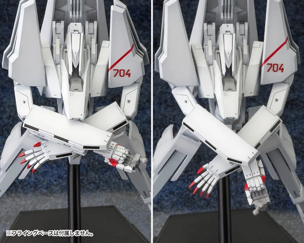 The Garde’s main weapon, the Kabizashi spear, is also included. The arm-mounted Artificial Retractable Kabizashi can be extended and also swapped out. The arm-mounted cutter can also be recreated by exchanging parts. Users can also recreate the quadrupedal mode that has yet to be seen in the series.
